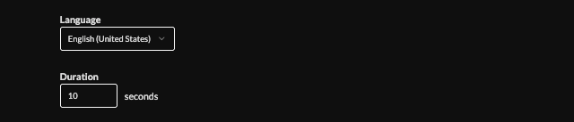8. Set the language, and set the duration (default 10s).