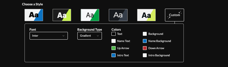 5. Choose a style (Preset or Custom) to adjust fonts, background type, and colors.