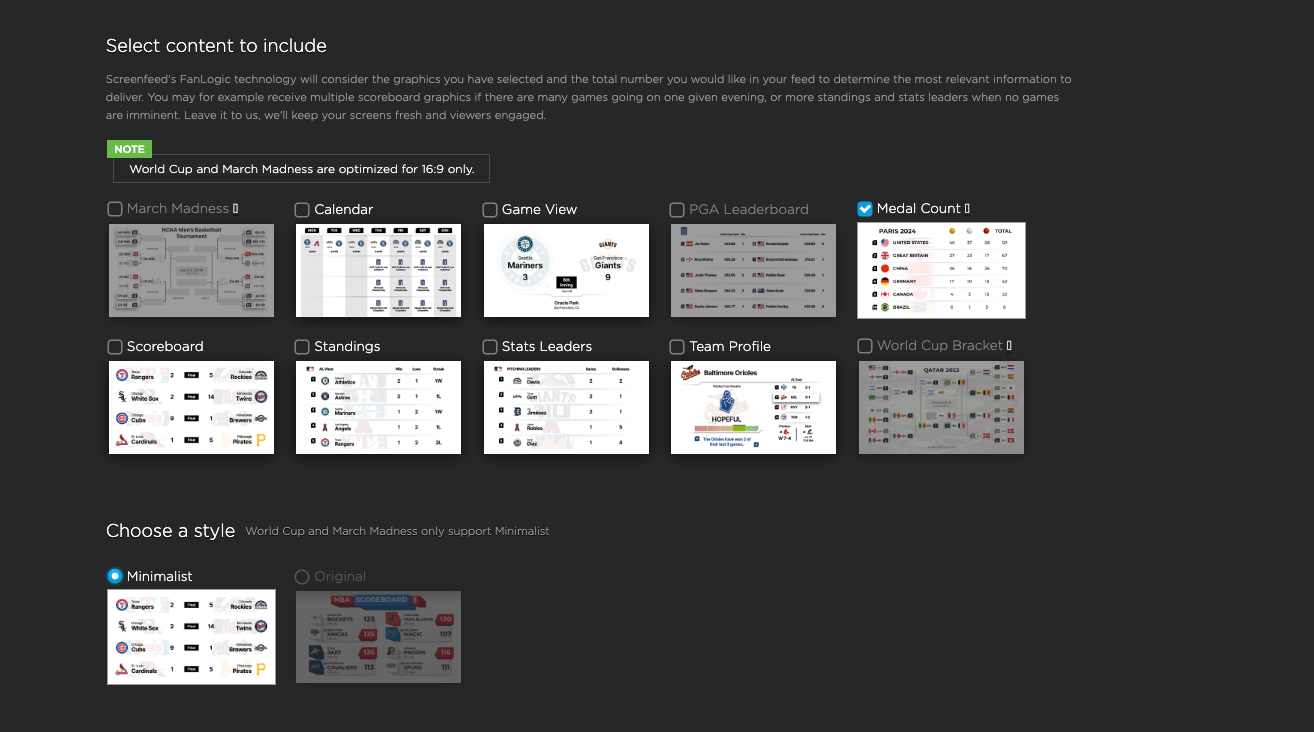 Configuring Medal Count Feeds