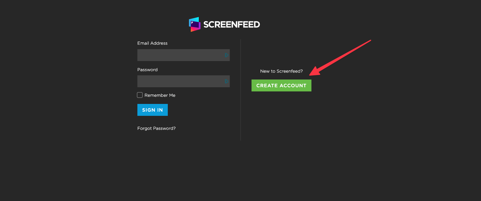1 .Login to screenfeed.com using your email and password.