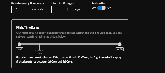 9. Set rotation time, limit pages, enable/disable animation, and set flight time range.