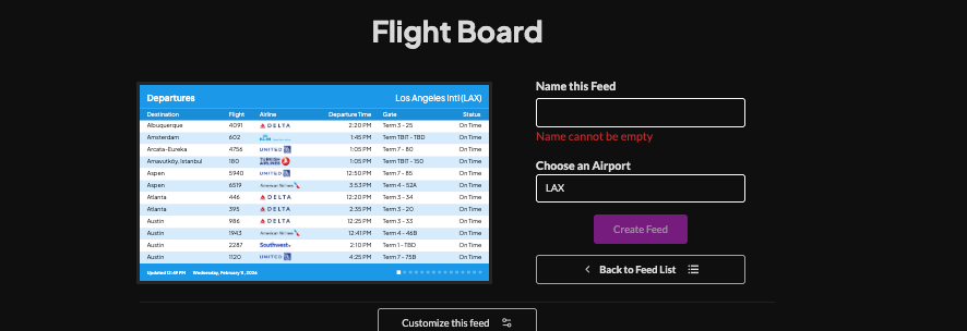 4. Click "Customize this Feed" and set the flight type (departures or arrivals).