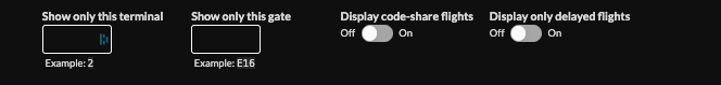 7. Optionally filter by terminal/gate. Enable displaying flight codeshare status, or limit to delayed status only.