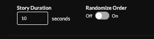 9. Set story duration (default 10s), or randomize the order of stories.