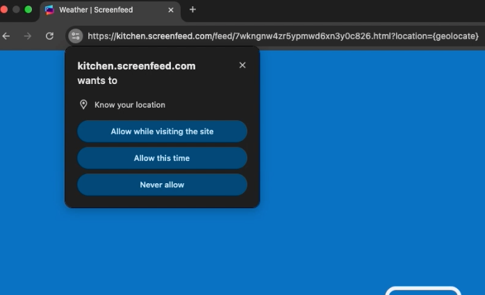 - Screenfeed uses a geolocation API over https to try to determine your/ your devices location.