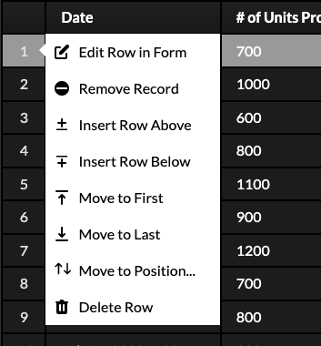 Hover your mouse over a row position number you should see a disclosure arrow, for more controls.