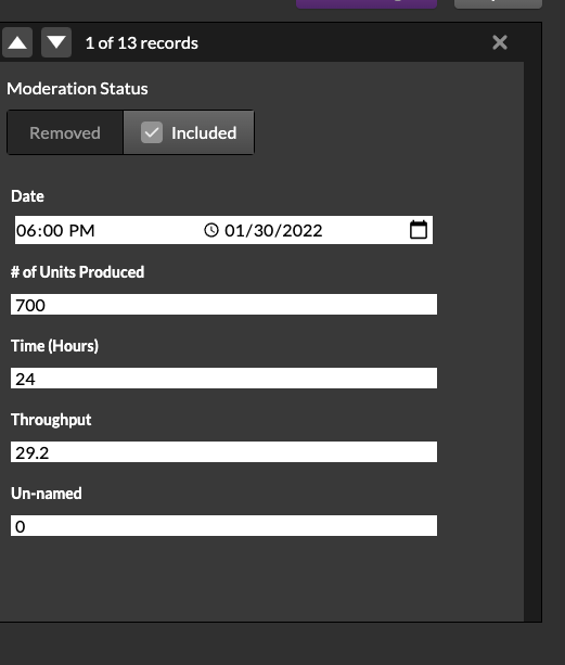 You also can edit the row in a form format. The form will show up to the right of the table. Where you can edit the record directly in the text fields and adjust moderation status.
