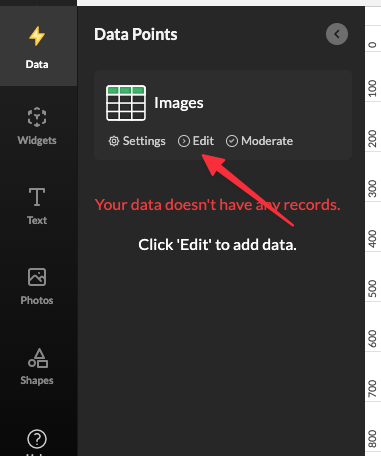 Or select a widget then choose Manage Data from the right hand properties panel.